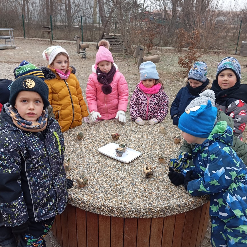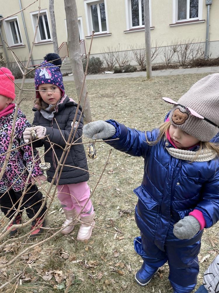 věnovala zimní tématice. Seznamovali jsme se s hlavními znaky této roční doby, typickým počasím a vhodným oblékáním. Povídali jsme si o důležitosti přikrmování některých zvířátek a naše děti se staraly o krmítka pro ptáčky na naší zahradě. K tvořivosti při hře na sněhu