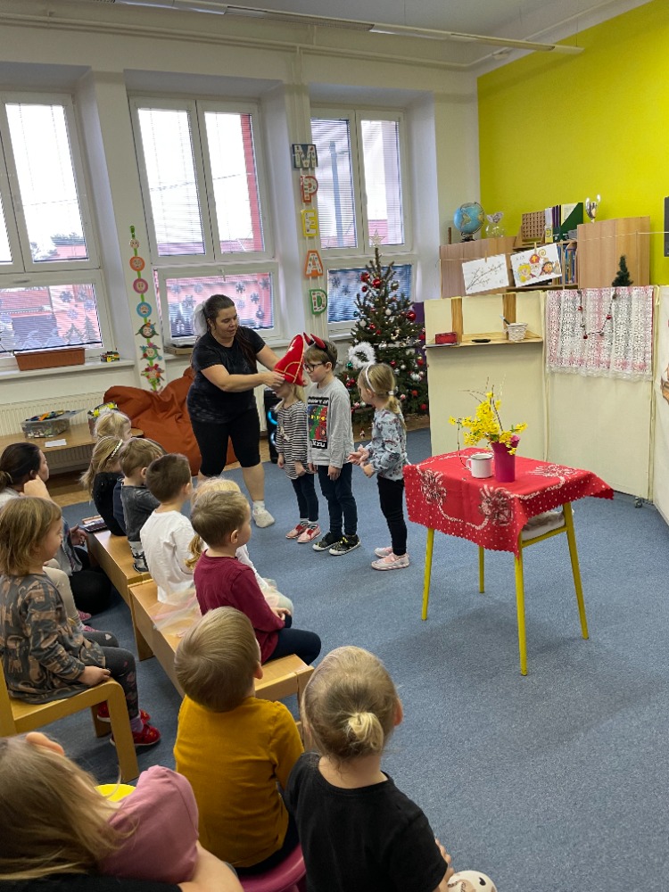 Skutečně, ani jsme se nenadáli a byl tu konec roku, měsíc plný radostného očekávání a těšení se. Sníh nám sice nepřivezl ani sv. Martin, ale jak to tak vypadá, nejspíš si budeme muset na vánoce bez sněhu zvyknout. Dětem z naší školky to ale vůbec nevadilo. Měly totiž plno práce s přípravami na mikulášskou a vánoční besídku. Mikuláš opravdu přišel s andílky i s čerty, lekat se však nikdo nemusel. Našli se sice tací, kteří se právem čertů obávali, ale nikoho z nich si neodnesli. Hříšníci museli slíbit, že se polepší a pro výstrahu dostali uhlík. Mikuláš s anděli obdaroval všechny děti mikulášskou nadílkou. Děti mu zarecitovaly a zazpívaly písničky, které se ve školce naučily. Během celého měsíce jsme se seznamovaly se zvyky a tradicemi pojícími se s vánočními svátky. Na toto téma k nám zavítalo i divadélko Květinka. Paní účinkující byla překvapená znalostmi našich dětí. Děti vyráběly dárky pro rodiče a pod ručkami jim vznikali přímo vánoční výtvarná díla v podobě andílků, vánočních stromečků a betlémů. Co čert nechtěl, rozmohly se u nás neštovice a tím pádem výrazně ubylo dětí. Vánoční besídka se samozřejmě neobešla bez spousty dárečků, cukroví a dobré nálady. Děti si chodily po zazpívání vánočních písní a koled ke stromečku a vybraly si školkový dárek, který jim padl nejvíce do oka. A nás jen mrzí, že jsme si tento den nemohli užít společně s dětmi, které byly nemocné. A že jich byla většina ☹.