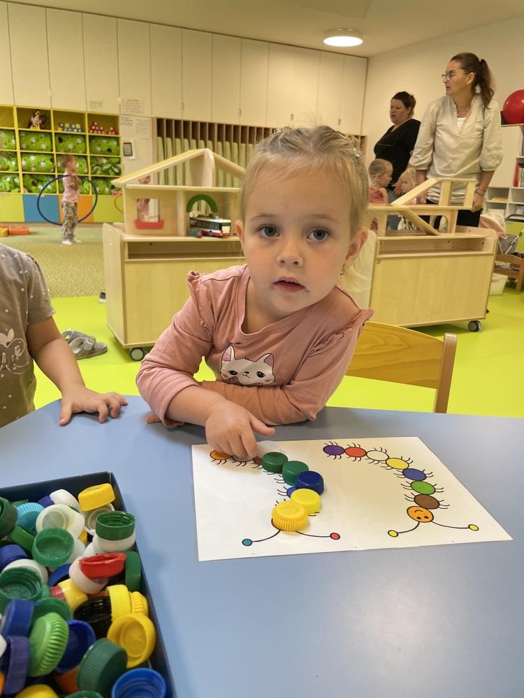 Prostřednictvím her, zajímavých výtvarných, hudebních a pohybových aktivit se děti seznamují s charakteristickými znaky podzimu a to především prožitkovým učením, smyslovým vnímáním a experimentováním. Víme, jak si hraje podzim s barvami, jak se mění počasí, co sbíráme na zahrádkách i na polích, pozorujeme a vnímáme přirozené změny v přírodě. Z voňavých jablíček jsme si upekli šťavnaté muffiny… „mňam.“