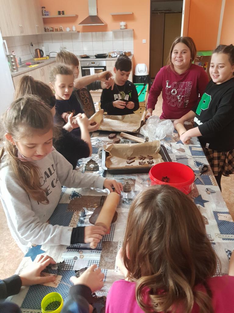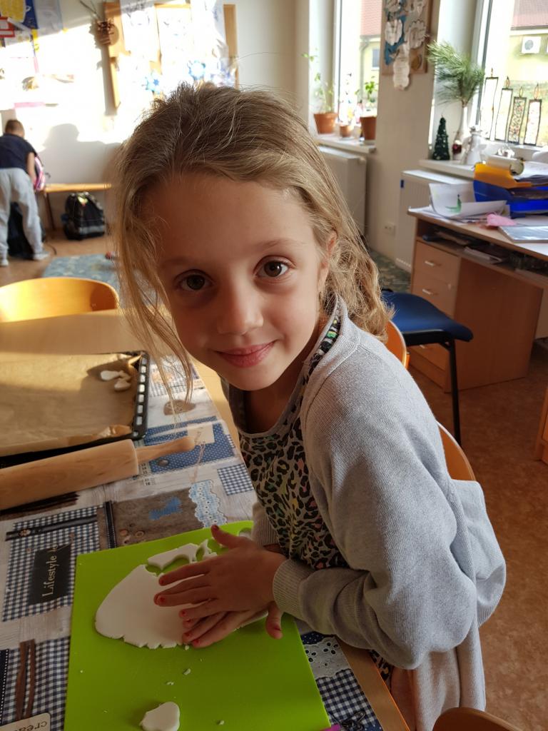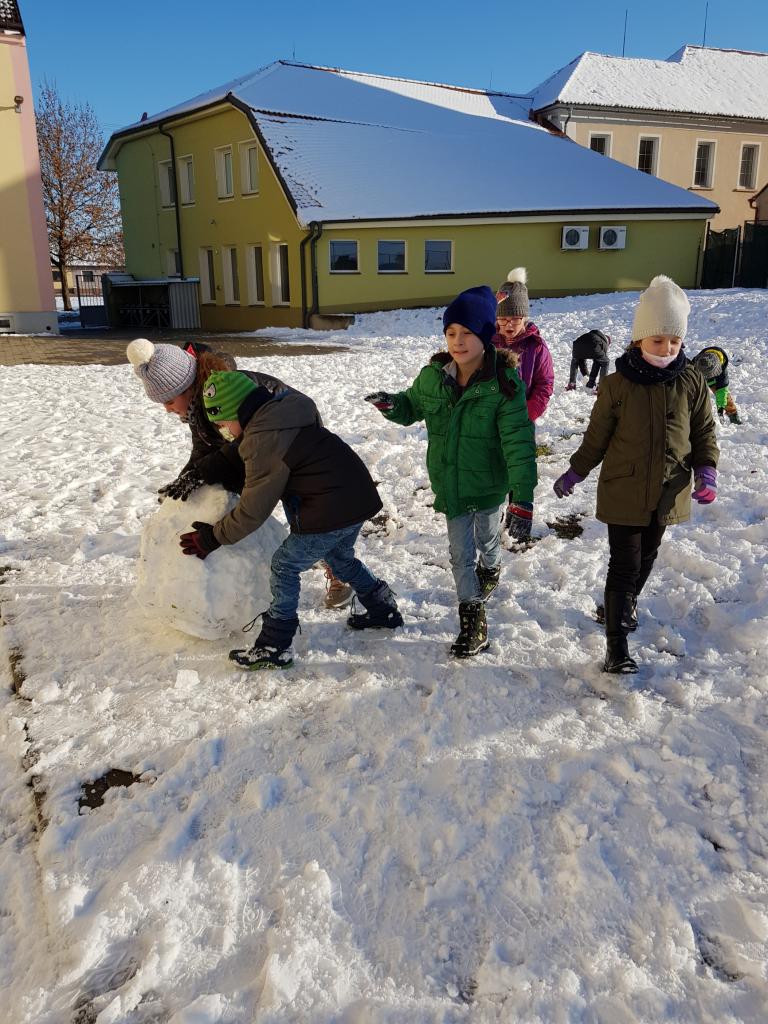 Z příběhu, který jsme si společně přečetli, děti zjistily, kdo sv. Mikuláš byl a proč chodí společně s čertem a andělem. Nejvíc se však děti těšily na pečení perníčků. Navážily suroviny, zpracovaly a vyválely těsto. Pak si vykrajovaly různé tvary, které po upečení krásně nazdobily. Tím práce v kuchyni neskončila. Děti také ze škrobu, sody a vody uvařily těsto, ze kterého tvořily vánoční ozdoby. I v tělocvičně si děti užily spoustu zábavy při čertovských hrách a pekelných soutěžích. Děti si také Mikuláše z barevného papíru vystřihly a nalepily. Na závěr týdne napadl tolik očekávaný sníh, který dětem udělal ohromnou radost. Děti s nadšením stavěly sněhuláka, válely koule, proháněly se sněhem.