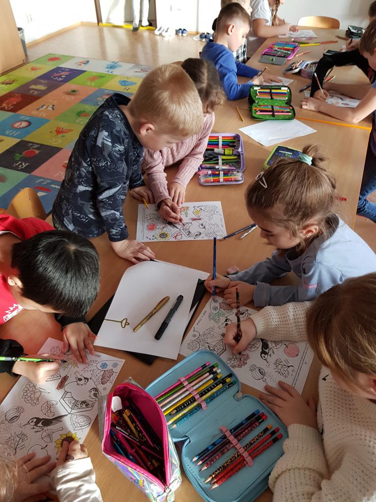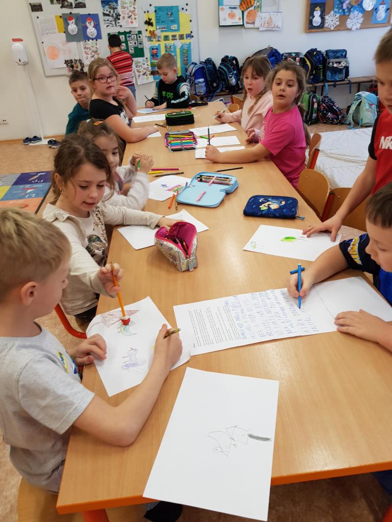 Pro ptáčky jsme také vyrobili kolečka ze semínek a sádla, která jsme umístili okolo potoka. V průběhu dvou týdnů děti zjistily, kteří ptáčci odlétají a kteří ptáčci jsou stálí. Děti zpracovávaly pracovní list o stravě ptáčků. Se zájmem psaly pohádku o ptáčcích a pohádku prostřednictvím kreseb i ilustrovaly. Děti si procvičily jemnou motoriku šitím ptáčků z filcu. Když jsme připravovali něco dobrého pro ptáčky, tak jsme se domluvili, že si připravíme něco dobrého i pro nás. Společně jsme si upekli ptáčky z lineckého těsta. V závěru projektu jsme se šli podívat k naší paní asistence na papoušky a andulky, abychom se dozvěděli také o těchto pestrých ptáčcích něco nového.