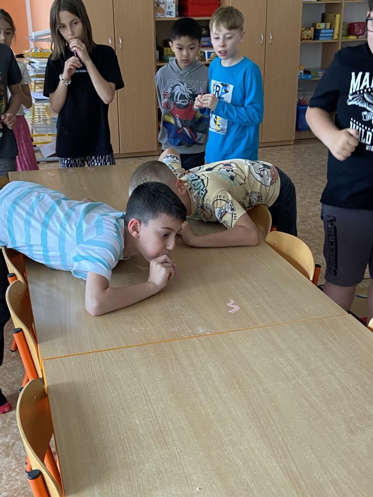 V průběhu projektu se děti dozvěděly mnoho nového a zajímavého o žížalách a jejich významu v přírodě, např.: jak žížala promíchává půdu, proč žížaly nevylézají na slunce, proč mají na svém těle sliz, jak se rozmnožují. V bádání jsme pokračovali při zakládání žížališť, kdy děti vytvořily ve sklenicích různé vrstvy půdy, písku, jílu, trávy. Následně si děti na školní zahradě vyryly a nasbíraly mnoho žížal, které na místě měřily a pozorovaly lupou. Poté žížaly vkládaly do připravených sklenic s půdou. Žížaliště děti v průběhu týdne pozorovaly a do záznamového archu zakreslovaly, jak žížaly tvoří tunely a míchají různé typy půdy. Děti celý týden plnily mnoho různorodých úkolů, při kterých si otestovaly své znalosti o žížalách a procvičily si své schopnosti a dovednosti. Také jsme se věnovali pečení žížalek ze slaného těsta. Děti si vytvářely a válely z těsta žížalky, které zdobily různými semínky. V závěru týdne na děti čekaly soutěže v tělocvičně, které si velmi užily. Projekt byl pro děti velmi přínosný a také zábavný. Doufáme, že si děti odnesly mnoho nových znalostí a zážitků.