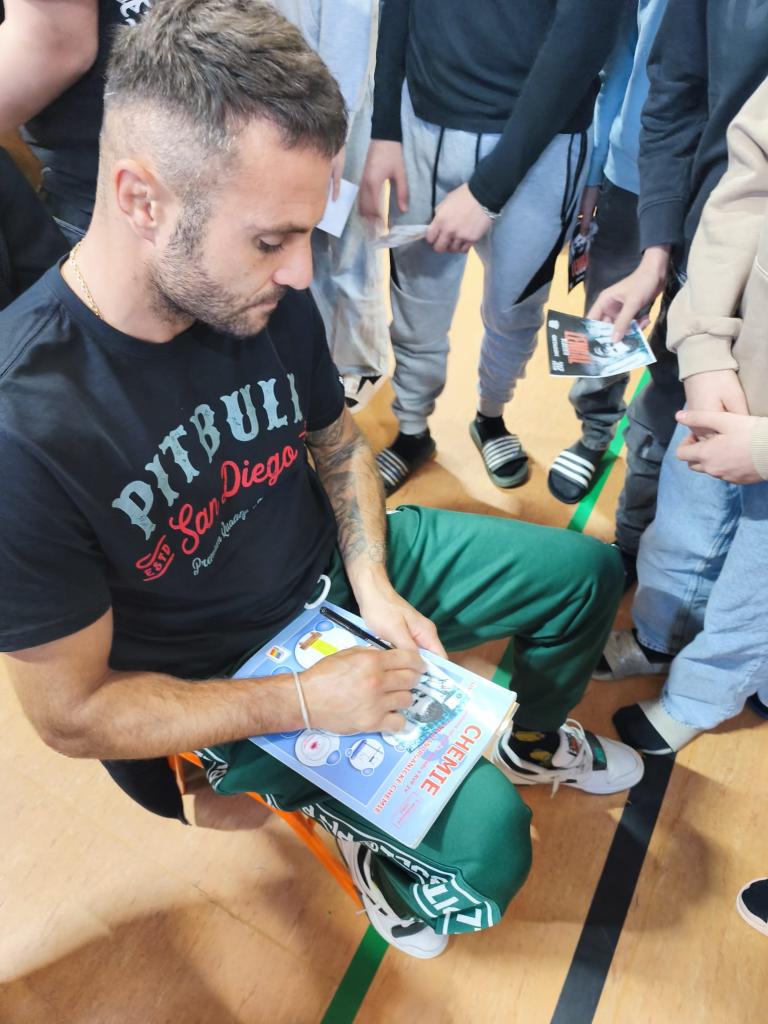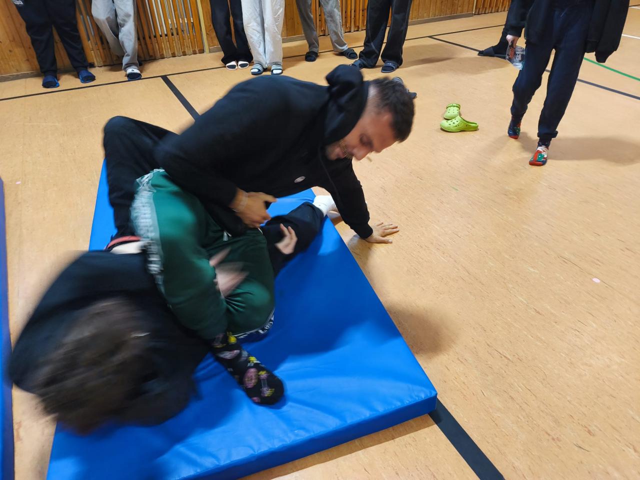 V příjemné atmosféře odpovídal na otázky dětí, které zajímala nejen jeho sportovní kariéra, ale například i způsob přípravy na jednotlivé zápasy. Vlado mimo jiné dětem také vysvětlil, že takovýto druh kontaktního zápasení patří pouze do tělocvičny a klece a ne do ulic. Nakonec proběhla krátká ukázka grapplingu, neboli zápasu na zemi a autogramiáda. Děkujeme!