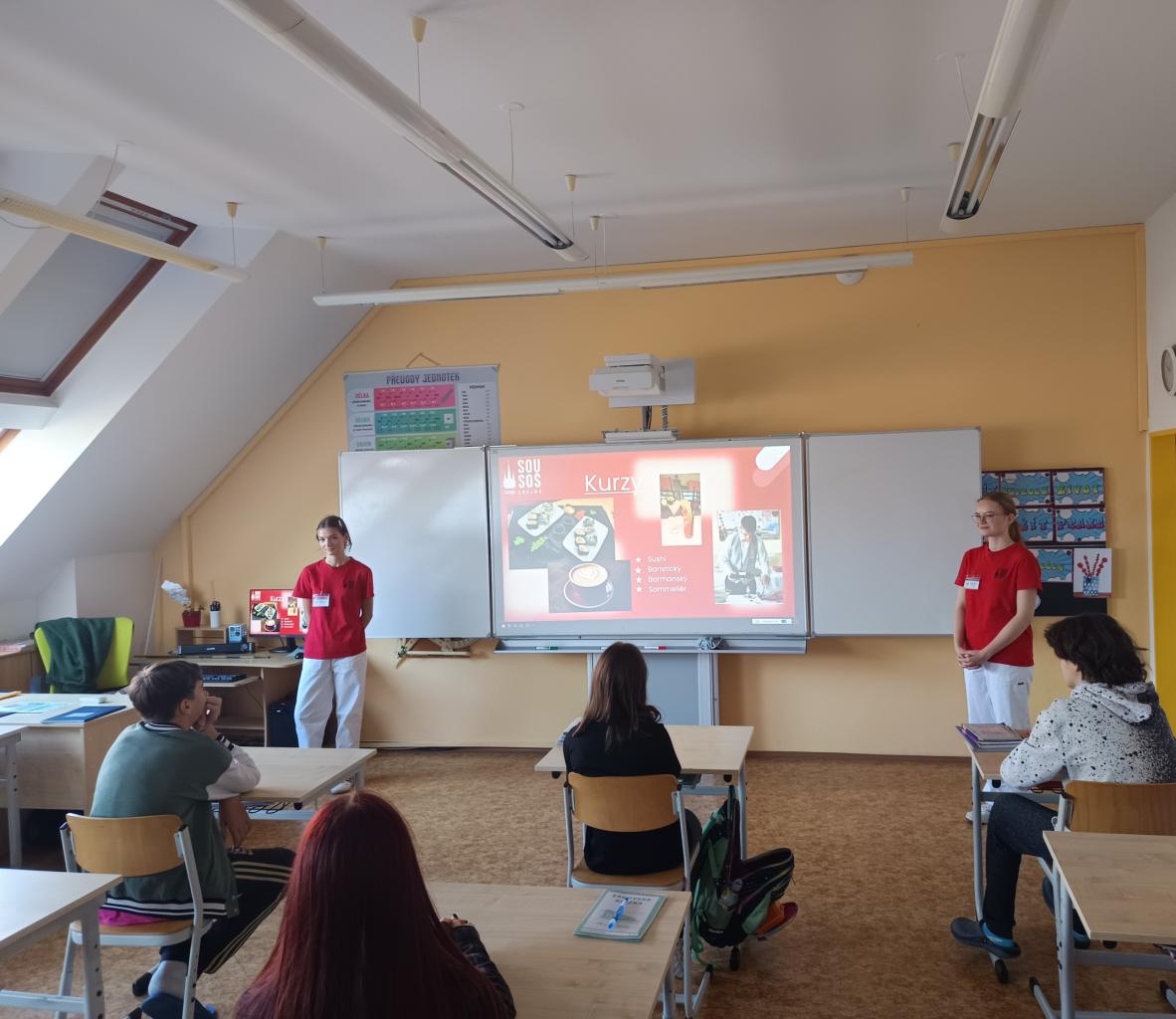 Školu na naší základní škole představily dvě studentky spolu s paní učitelkou Sabovou. Během setkání byli žáci seznámeni s nabídkou maturitních i učebních oborů včetně možnosti následného nástavbového studia. Prezentace žákům pomohla lépe se zorientovat v nabídce středních škol a může jim usnadnit rozhodování o dalším studiu a budoucí profesní dráze.