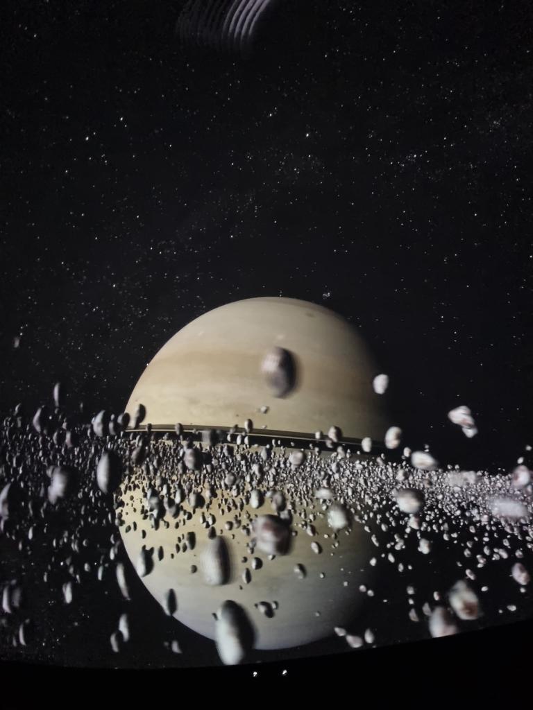 Po příchodu nás v projekčním sále čekala prohlídka nejnápadnějších hvězd i souhvězdí, naší Galaxie a planet Sluneční soustavy. Součástí byl také program Stellárci: Zelená výprava.