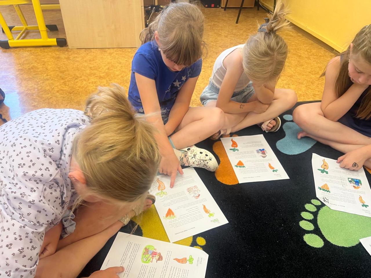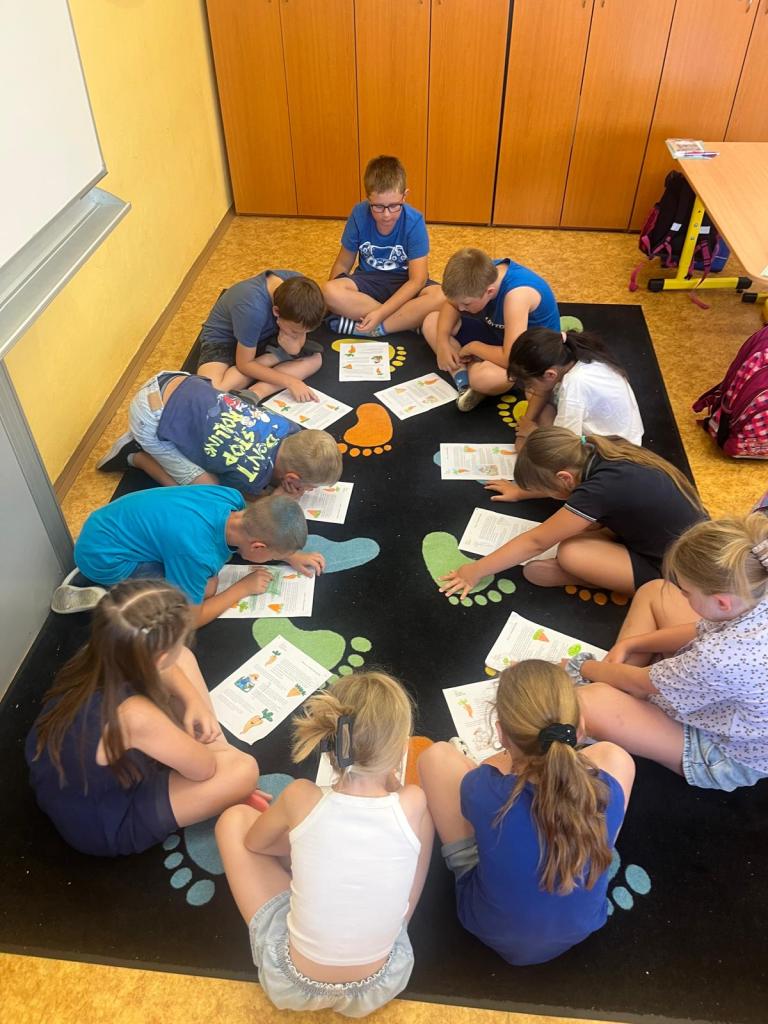 Abychom si téma více přiblížili, vyluštili jsme si křížovku zaměřenou na správné zacházení se zdroji a pojmy související s ekologií a udržitelností. Velkou radost dětem udělal také příběh křivé mrkvičky, který jsme si společně přečetli.