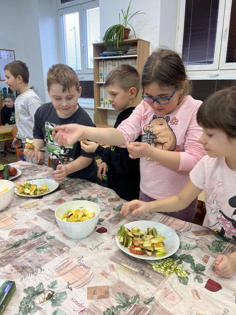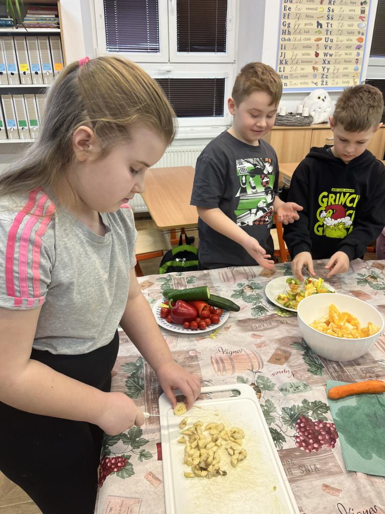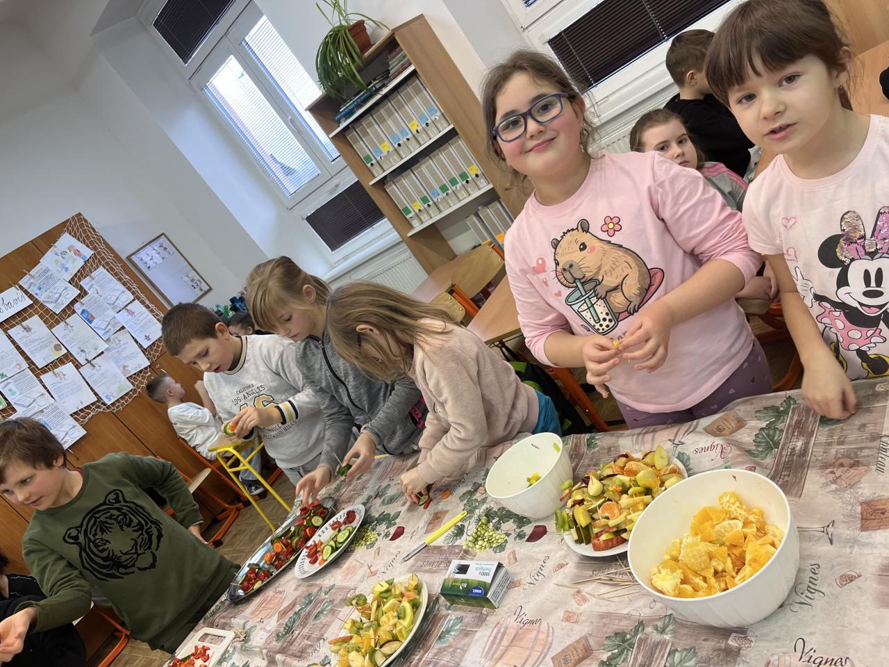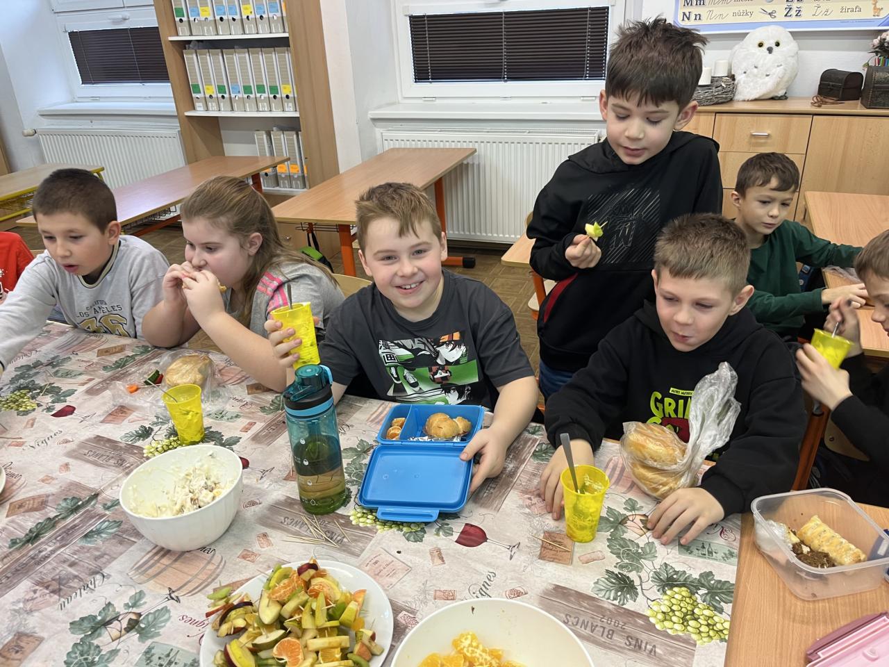 V rámci třídního projektu „Ve zdravém těle zdravý duch“ jsme se zaměřili na to, jak o sebe správně pečovat, proč se hýbat a jak jíst, abychom měli dostatek energie po celý den. Hlavním přínosem bylo zjištění, že to, jak jíme a jak se hýbeme, přímo ovlivňuje to, jak se cítíme. Děti si z tohoto projektového dne odnesly i spoustu nových poznatků o stavbě svého těla a ochutnaly mnoho zdravých pokrmů, které si sami připravily.