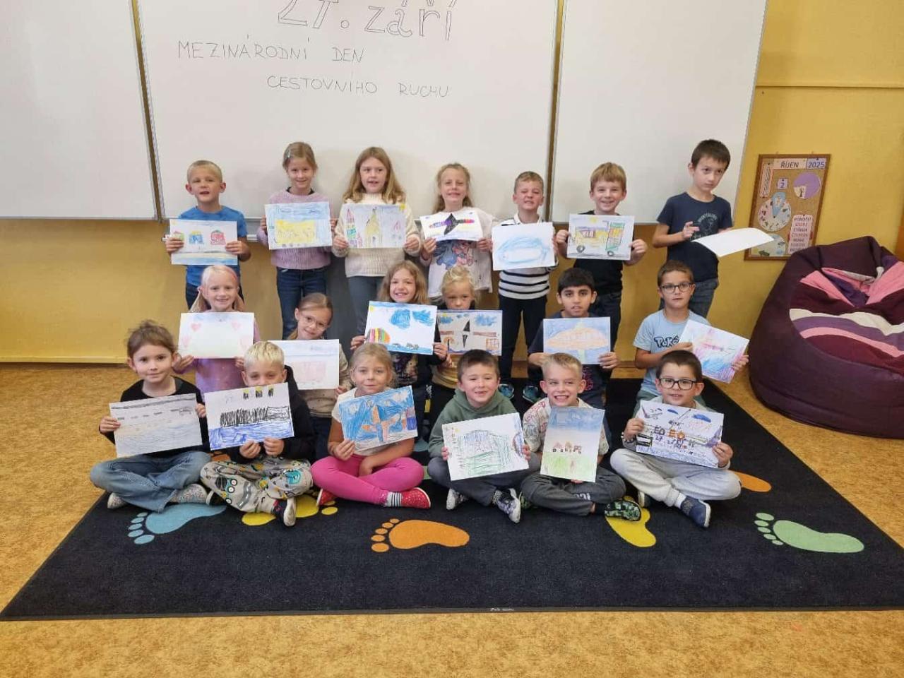 V rámci projektové výuky se žáci vydali na pomyslnou cestu kolem světa. Zkoumali různé způsoby dopravy – od vlaků a autobusů přes letadla až po lodě. Mladší děti malovaly dopravní prostředky a kreslily mapy svých vysněných cest, starší žáci se zabývali i environmentálními otázkami a diskutovali o tom, jak cestovat šetrněji.
