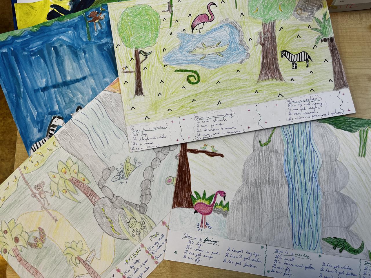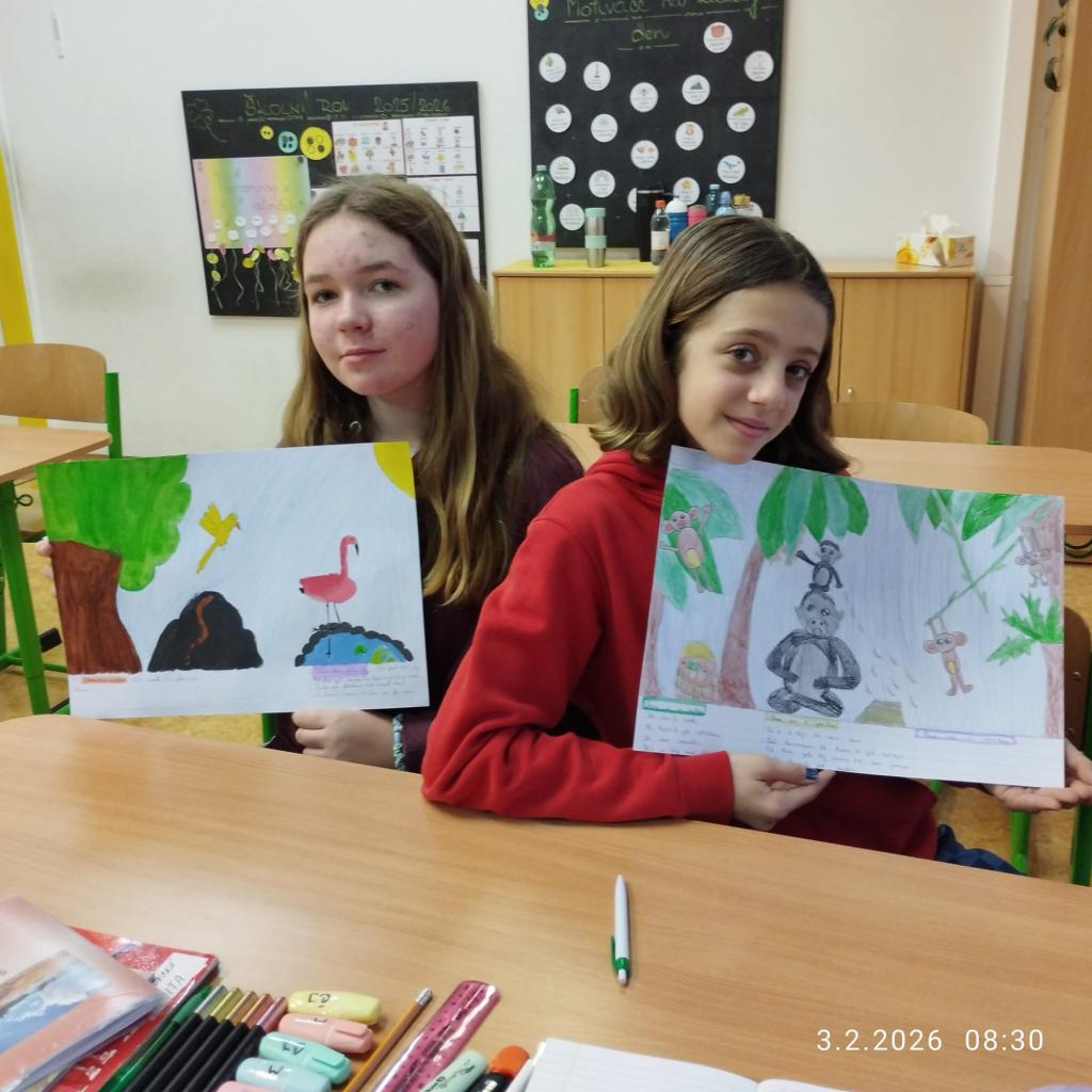 A právě s těmito příslovími se naši páťáci seznámili v hodinách českého jazyka. Nejdříve si vysvětlili význam některých známých přísloví. Ve skupině si procvičili čtení s porozuměním, když v příslovích vyhledávali nejzajímavější informace. Učili se také správně formulovat vlastní myšlenky při práci s otevřenými otázkami. Velkou výzvou byl souboj s větami u kterých určovali, zda se jedná o pravdu nebo lež. Byla to skvělá škola porozumění a logiky. Zvířecí přísloví jsou navíc super v tom, že je najdeme skoro v každém jazyce. S páťáky jsme se společně podívali na zvířata také v anglických rčeních a příslovích. Porovnávali jsme ty nejzajímavější shody a rozdíly. Využití přísloví a rčení v hodinách angličtiny je na základní škole skvělý způsob, jak propojit nezábavnou gramatiku s živým jazykem a kulturou. Pro děti jsou zvířecí metafory snadno představitelné a zábavné a pomohou utvořit most mezi oběma jazyky. Díky obraznosti (It´s raining cats and dogs – prší psi a kočky) si děti novou slovní zásobu zapamatují mnohem lépe než ze seznamu slovíček. Přísloví často obsahují také gramatické jevy k procvičení. A nezůstalo jen u přísloví. Jednotlivá zvířata jsme si pak popsali do posledního detailu. Žáci v hodině výtvarné výchovy vytvořili pěkné ilustrace, které následně doplnili o anglické popisky. Tímto způsobem vznikl vizuální slovník. Měli jsme tak možnost vyzkoušet si metodiku CLIL-výuka nejazykového předmětu v cizím jazyce. Nakonec jsme se ještě podívali s naší učebnicí angličtiny do zoologické zahrady a představili před třídou své nejoblíbenější zvířátko. V hudební výchově se děti naučily píseň o zvířatech, v hodinách pracovních činností si potrénovaly prostorovou představivost při výrobě zvířecích 3D modelů. Procvičily si jemnou motoriku při stříhání, skládání a lepení. Vyrobená zvířátka teď zdobí prostory školy. Myslím, že si páťáci měsíc se zvířátky náramně užili.