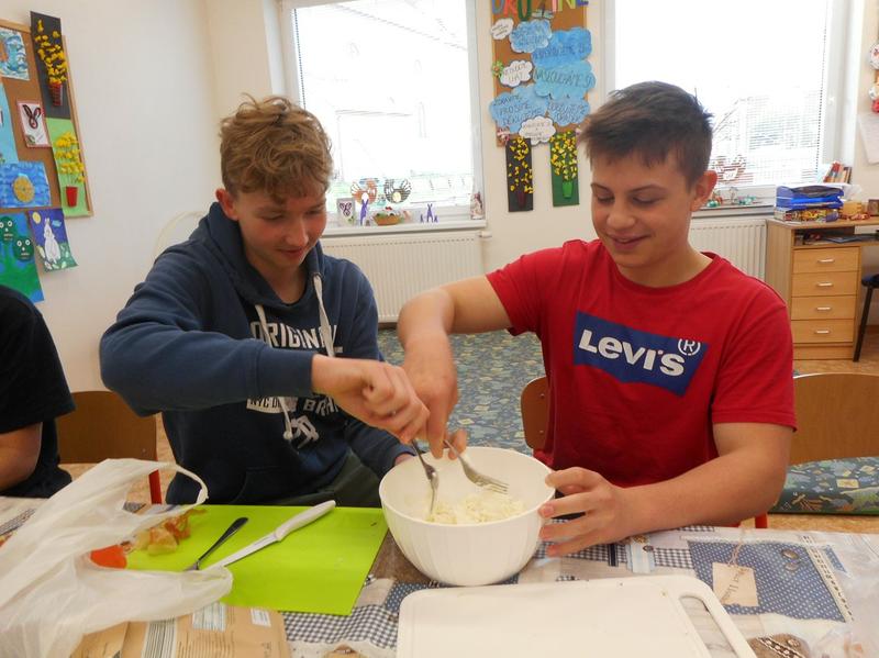 Po prezentaci se žáci přesunuli do kuchyňky a taková pozdně středověká jídla sami připravovali. Jednalo se o obyčejná jídla, jako byla pražma, placky ze špaldové (pohankové) mouky, pomazánky z tvarohu, medvědího česneku, kysaného zelí. Potom u prostřeného stolu proběhla hostina. Žáci mohli ochutnat vlastnoručně vytvořená jídla a dozvědět se zajímavé poznatky o Velikonocích i o době, v níž se slavily.